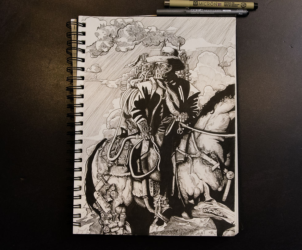 I was trying just to have fun here. I wanted to do a cowboy, but I also wanted something rustic and sophisticated. A Steampunk Cowboy was most fitting.